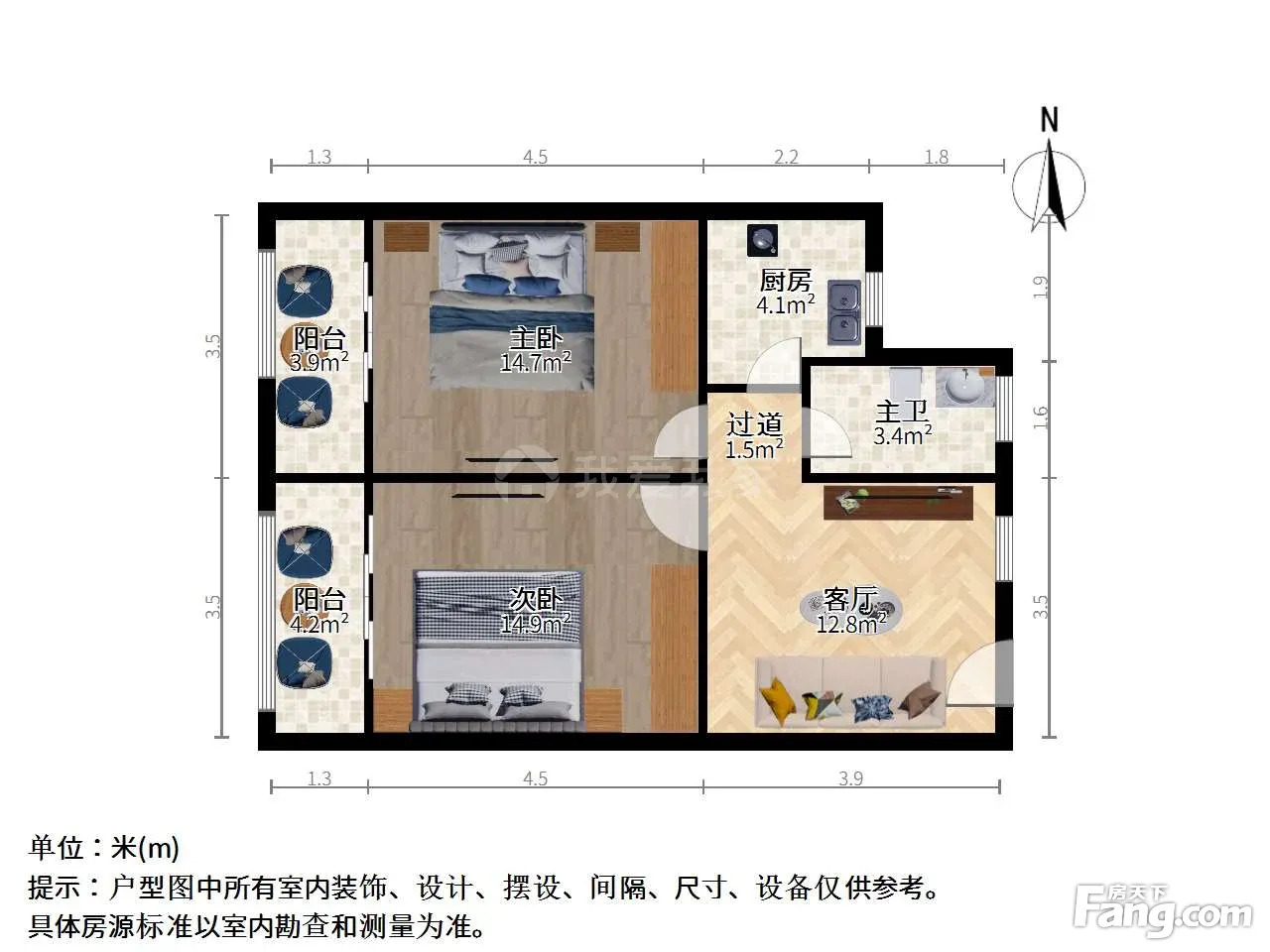 户型介绍:此房户型为2室1厅1卫,建筑面积为88.75平米,朝向为南。