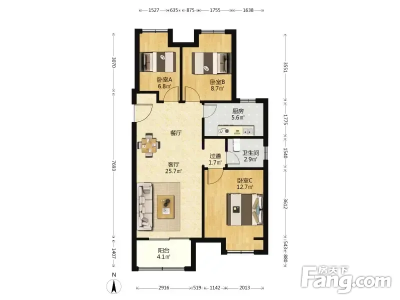 大学里(二期) 3室1厅 91.81平