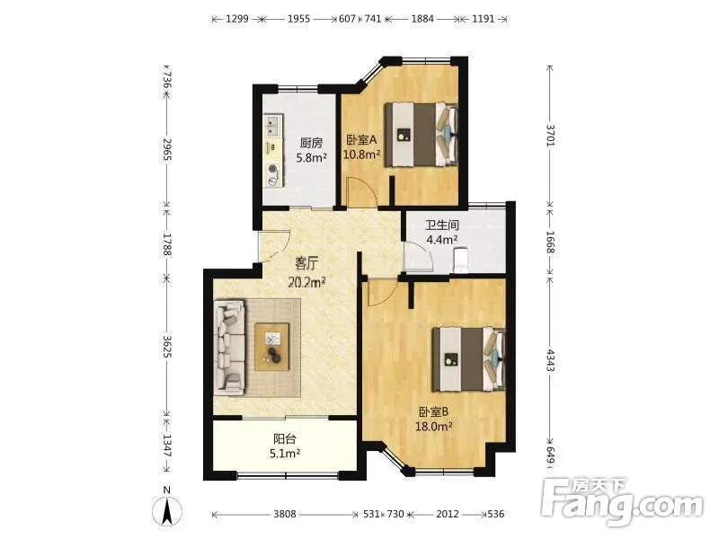 户型齐全,主打户型方正,明卫,客厅朝南二居