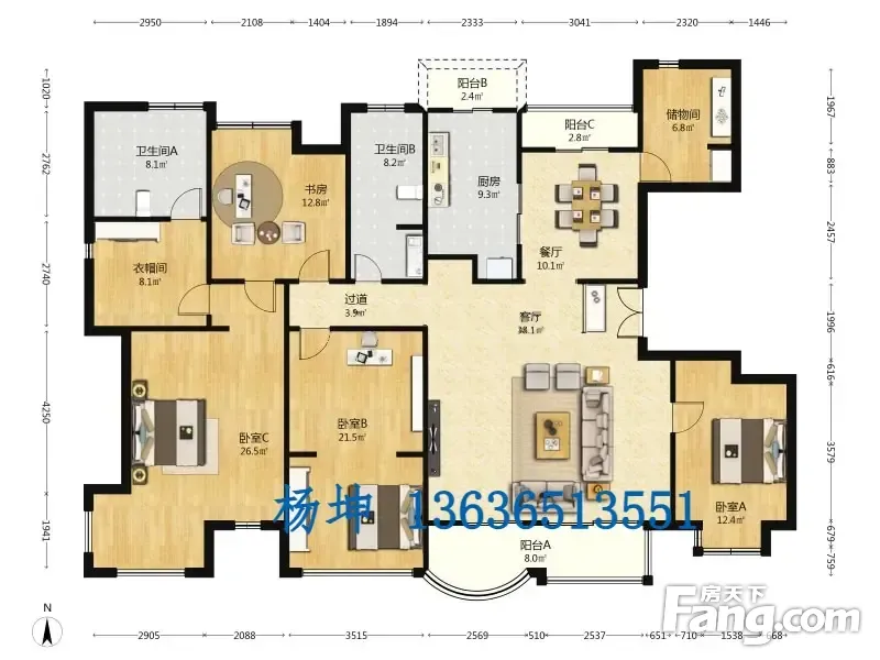 房屋拥有相对宽松的尺寸,布局通透,动静分离,设计豪华