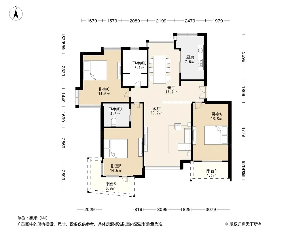 户型齐全,主打户型方正,明卫,明厨,客厅朝南,双卧朝南三居