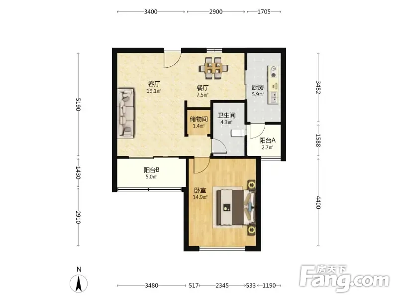 1室2厅1卫