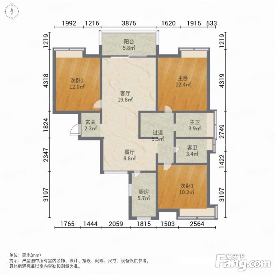 户型齐全,主打户型方正,明卫,明厨,双卧朝南,主卧朝南三居