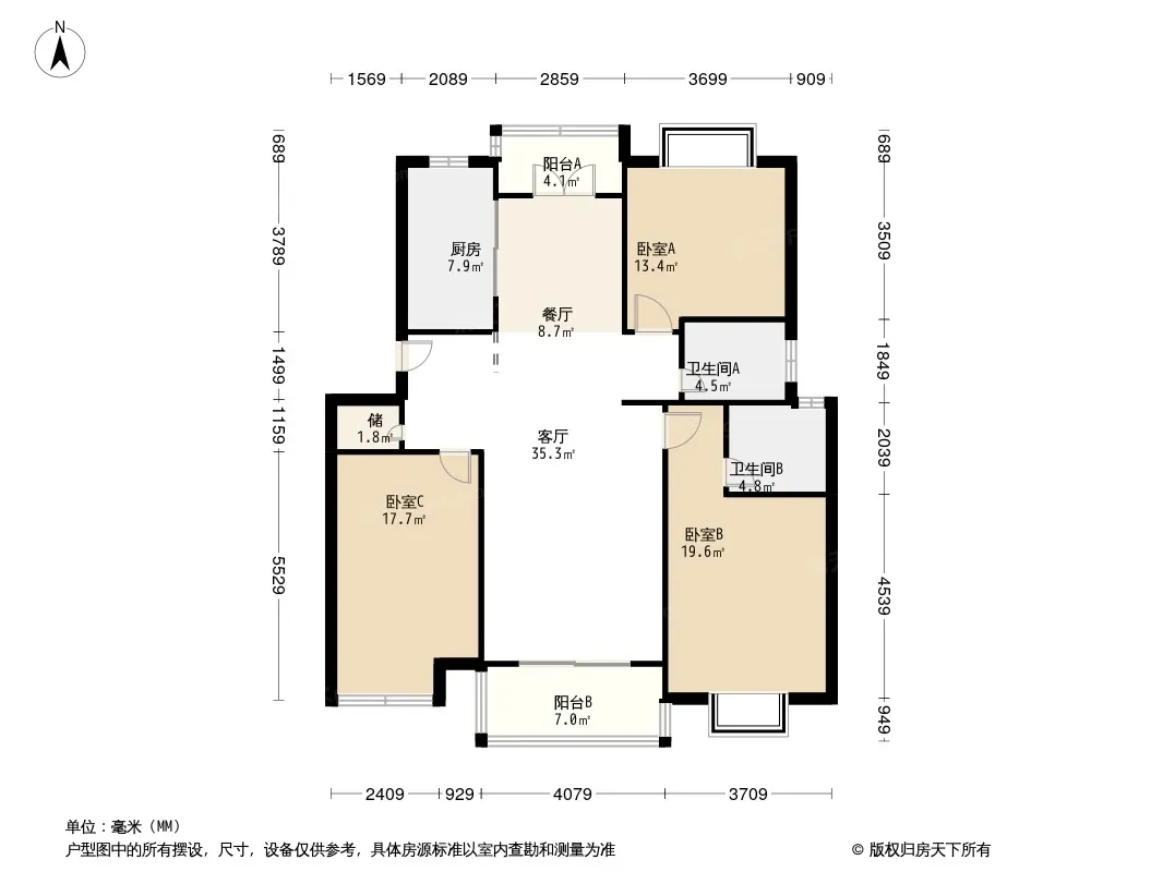 房屋拥有相对宽松的尺寸,布局通透,动静分离,设计豪华