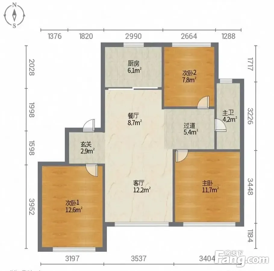 户型齐全,主打全明格局,户型方正,采光充足三居