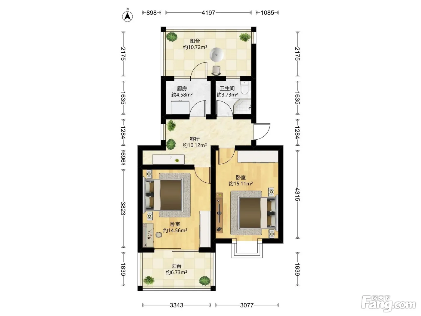 中环旁2004年,送大露台,双南两房,采光好