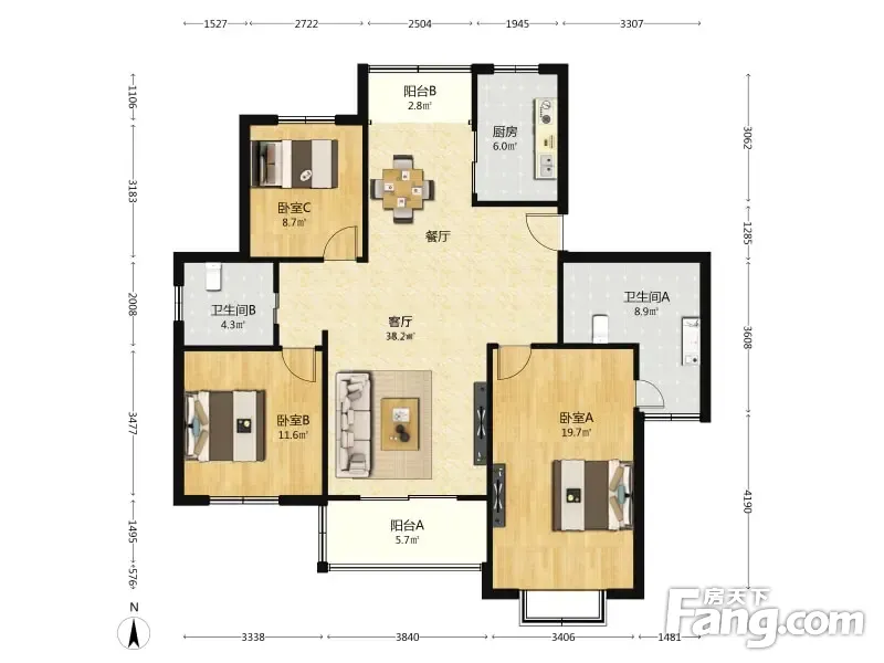 户型齐全,主打户型方正,明厨,明卫,客厅朝南二居