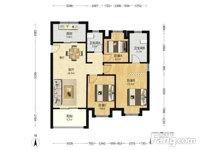 3室2厅1卫