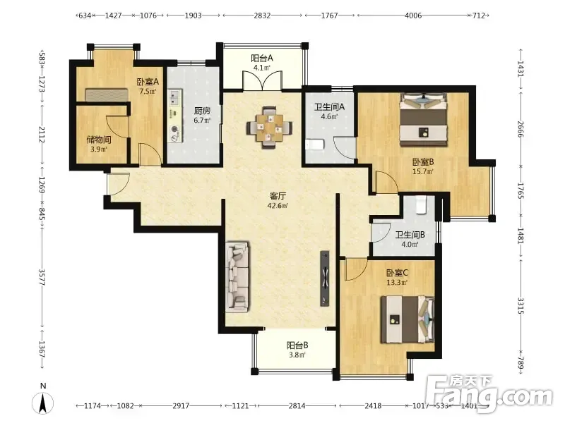 耀江花园 3室2厅 136.89平