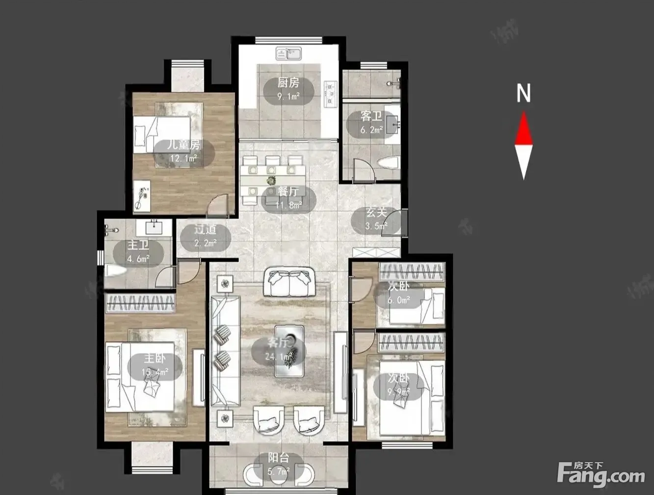 房屋拥有相对宽松的尺寸,布局通透,动静分离,设计豪华