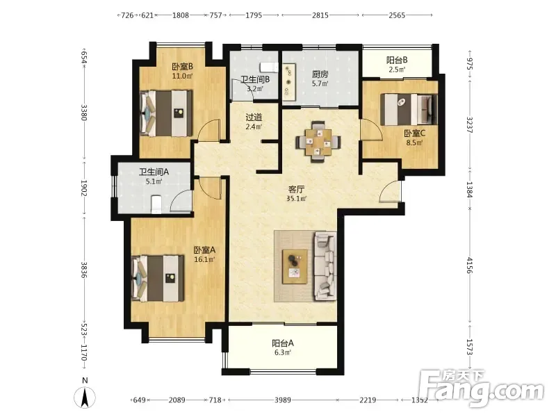 绿地清猗园(威廉公馆三期) 3室2厅 129.3平