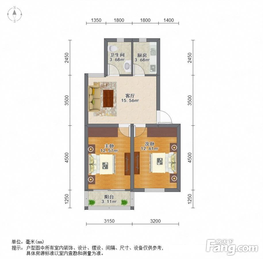 户型齐全,主打户型方正,明卫,明厨,客厅朝南,主卧朝南二居