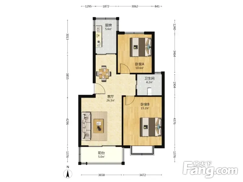 户型齐全,主打户型方正,明厨,明卫,主卧朝南二居