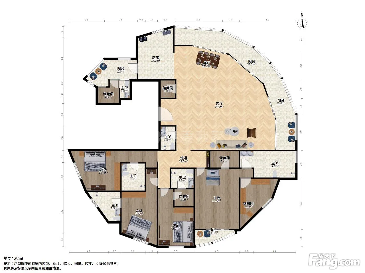 户型齐全,主打南北通透,露台五居