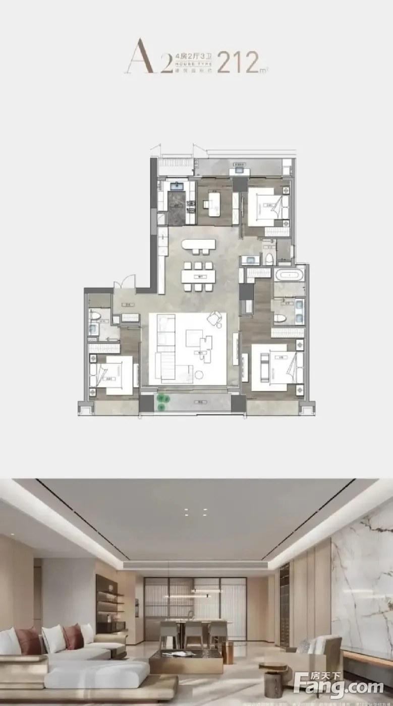 房屋拥有相对宽松的尺寸,布局通透,动静分离,设计豪华。