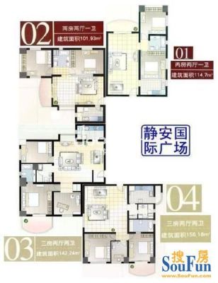静安国际广场公寓户型主要有141平-171平的户型方正,明厨,明卫,客厅朝南的三居 、101平-114平的户型方正,明厨,明卫的二居 。