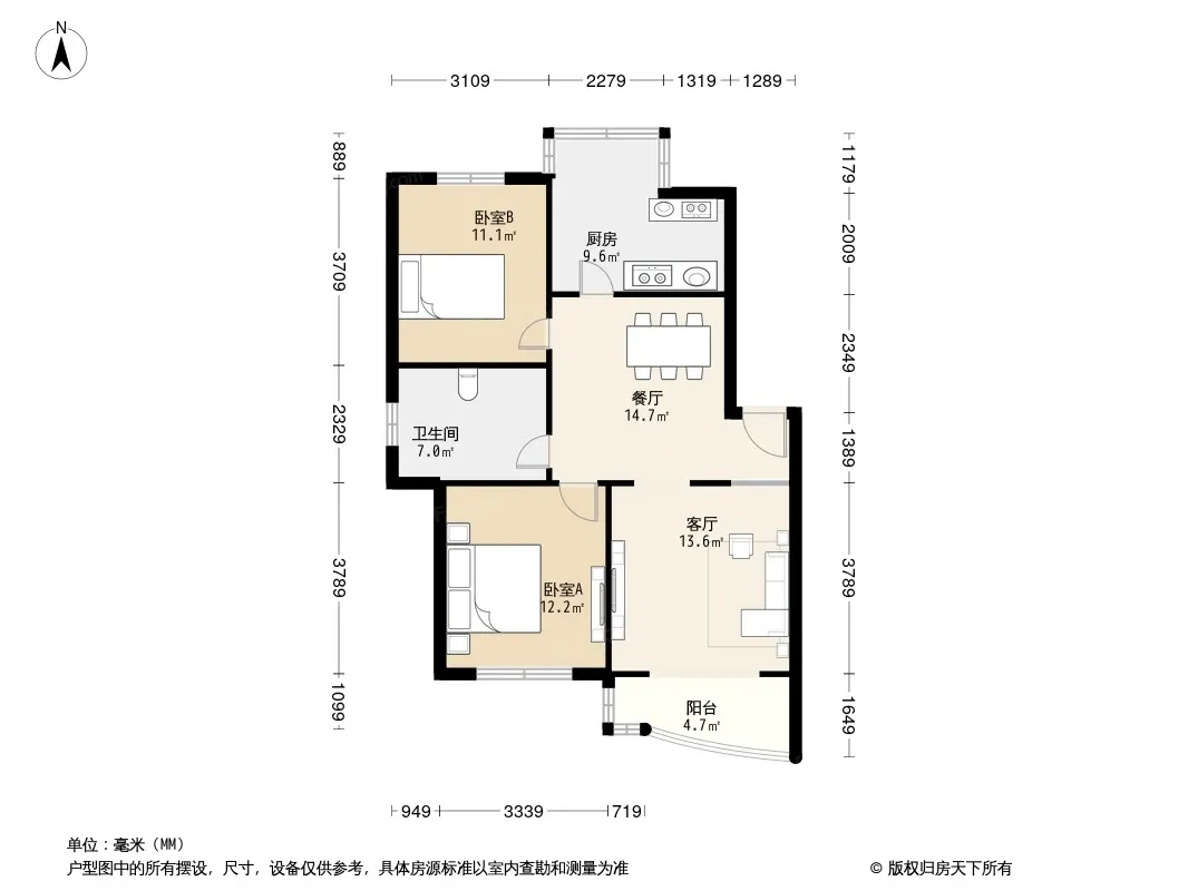 户型齐全,主打户型方正,明厨,明卫,客厅朝南,全明格局,双卧朝南,主卧朝南三居