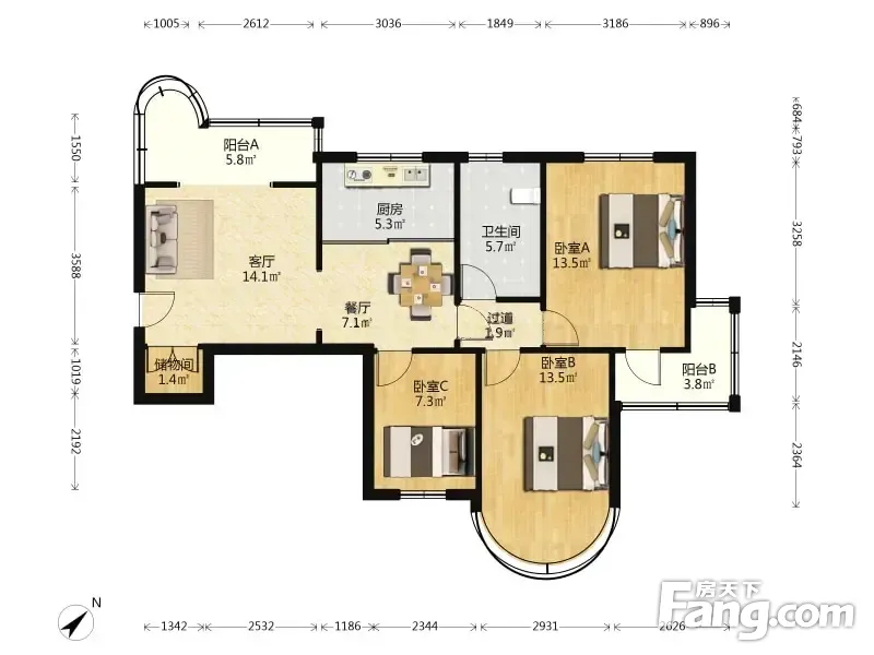 3室2厅1卫