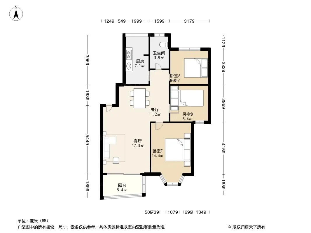 3室2厅1卫