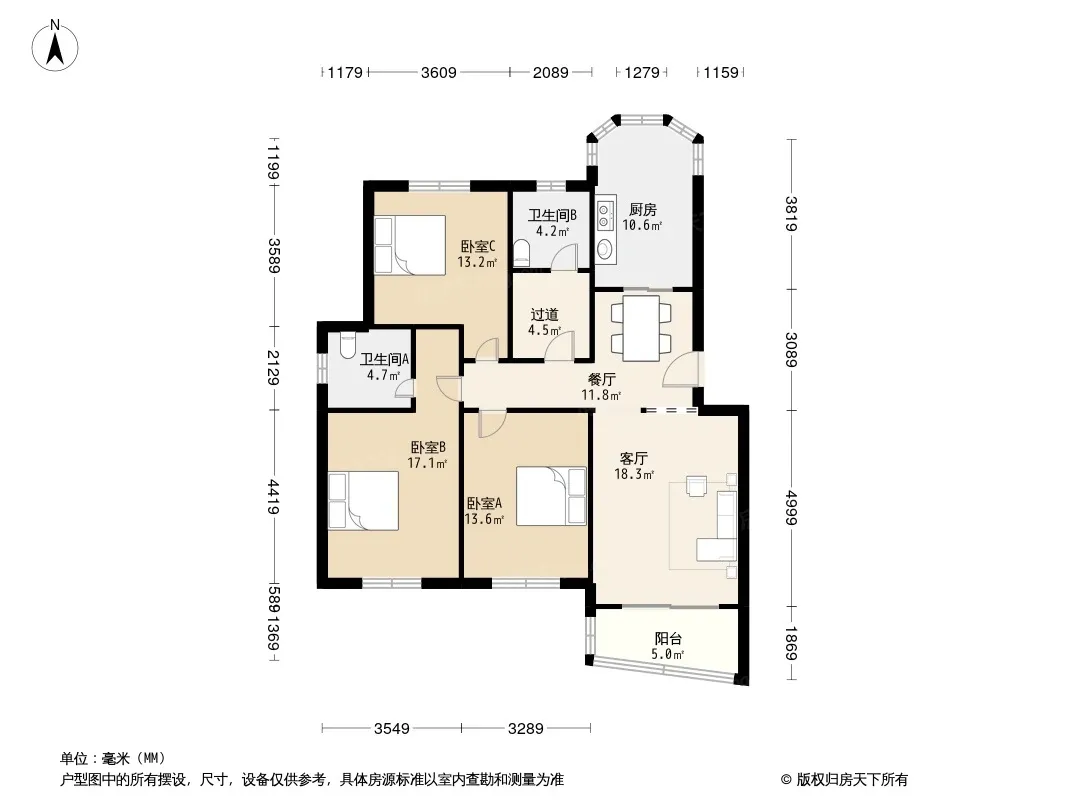 户型齐全,主打明卫,双阳台三居