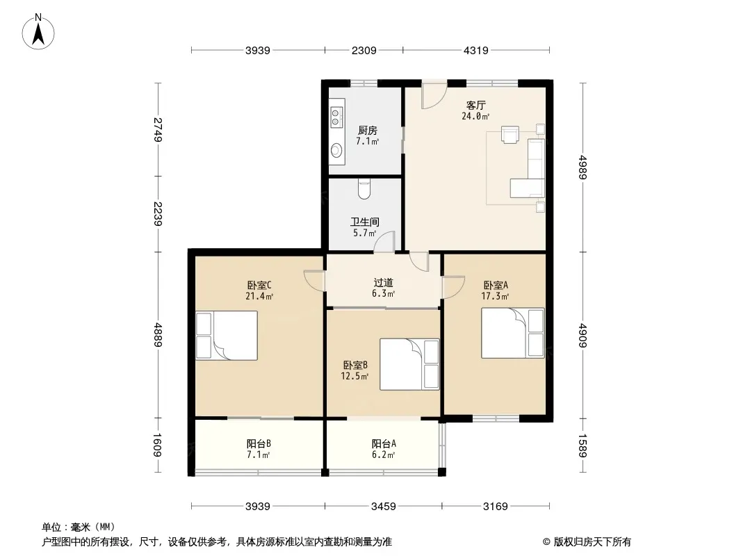 户型齐全,主打户型方正,明厨,客厅朝南,双阳台二居