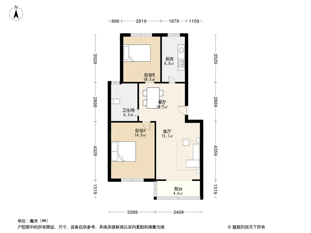 户型齐全,主打户型方正,明卫,明厨,主卧朝南二居