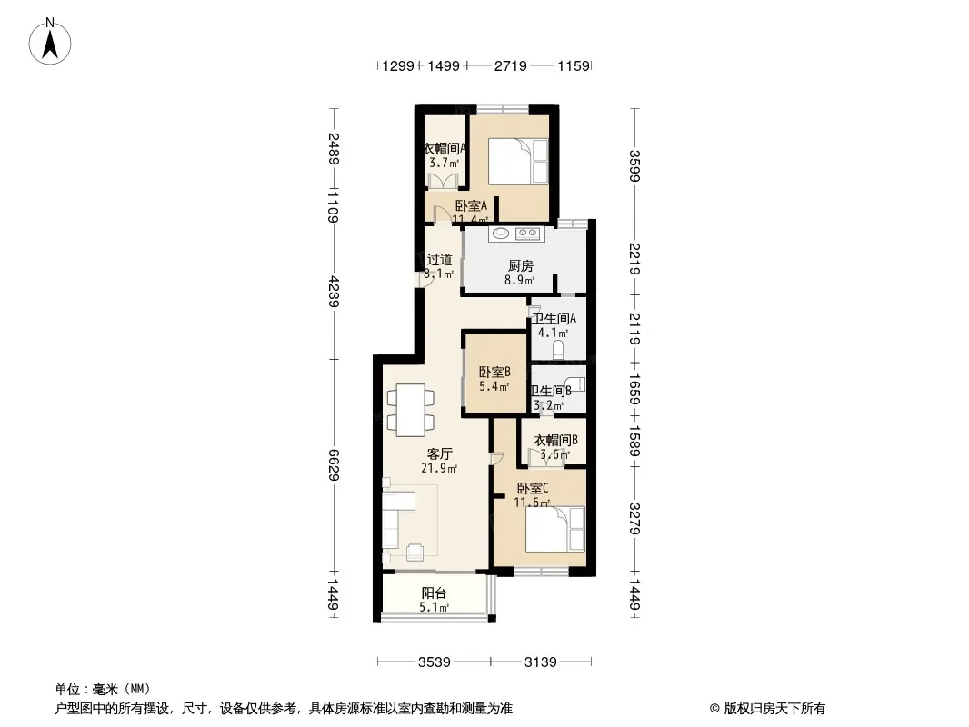 户型齐全,主打户型方正,明卫,明厨,主卧朝南三居