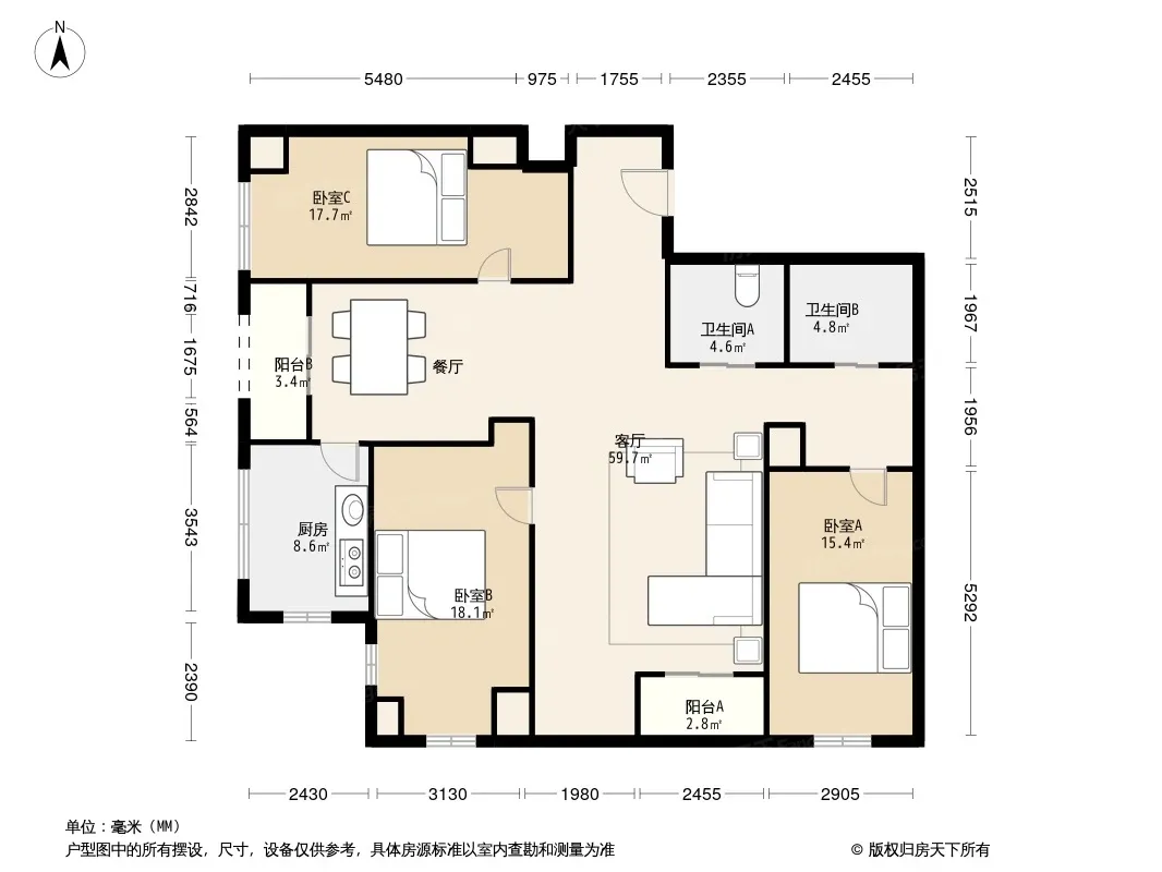 户型齐全,主打户型方正,客厅朝南,双阳台二居