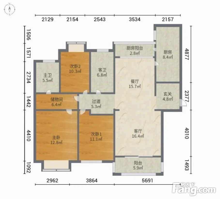 7.5米大横厅,精装南北通三房,楼层中区,厨卫全明!