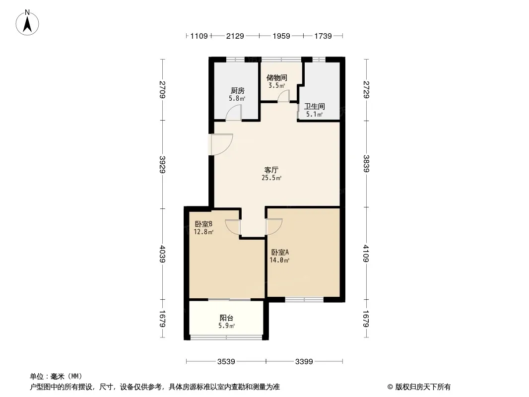 户型齐全,主打户型方正,明卫,明厨,客厅朝南,主卧朝南二居