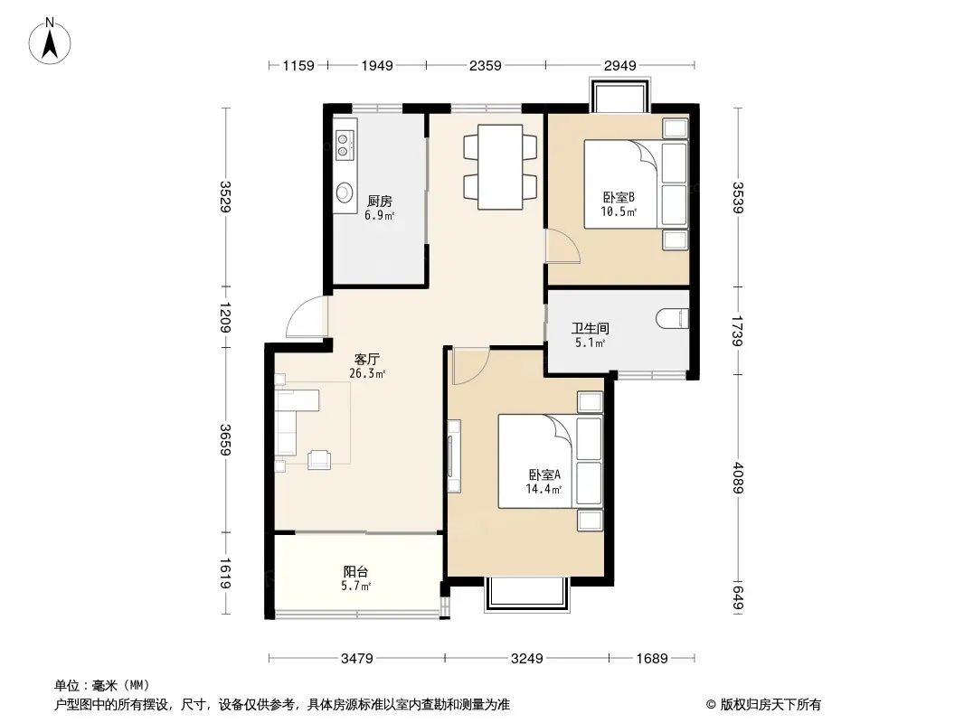 户型齐全,主打户型方正,明卫,明厨,主卧朝南,独立衣帽间,双卧朝南三居