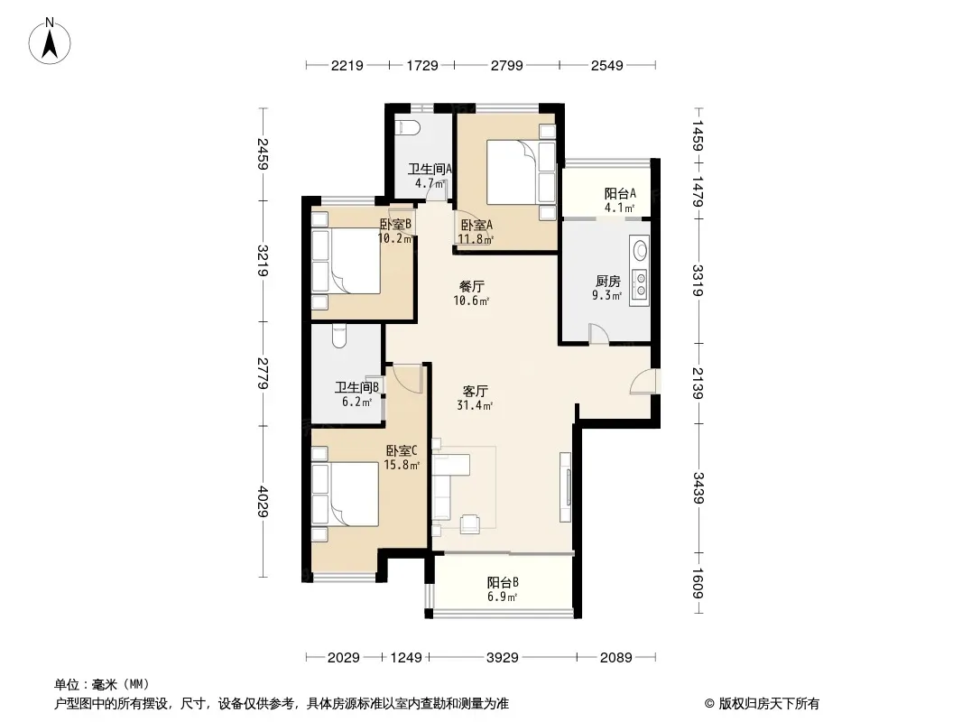 户型齐全,主打户型方正,明厨,明卫,双阳台,主卧朝南三居