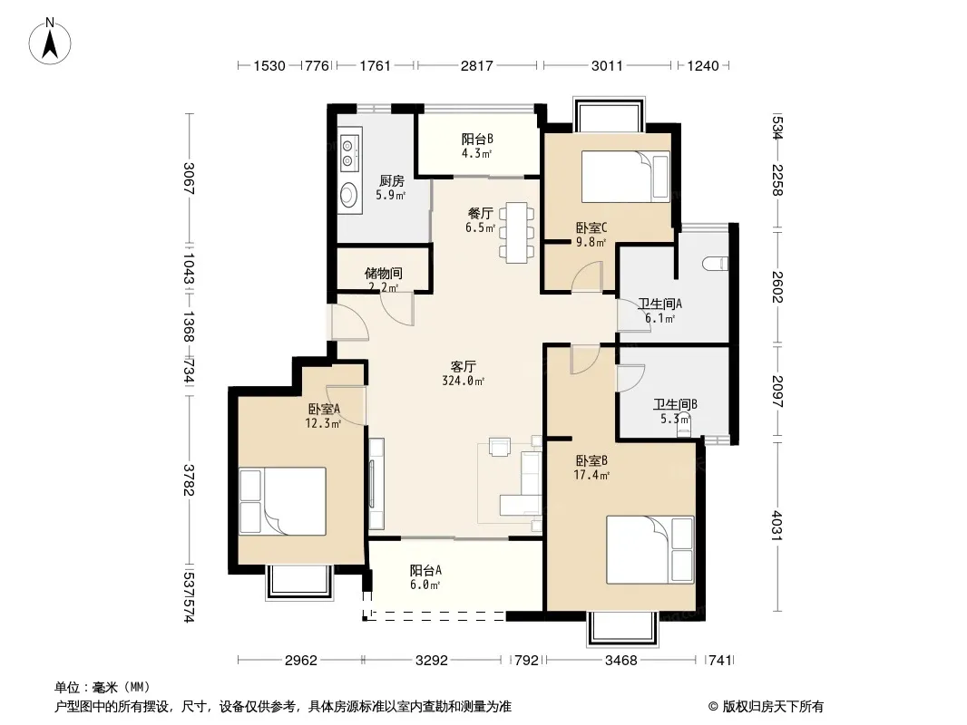 *获取完整户型报告,同时会有免费语音讲解服务