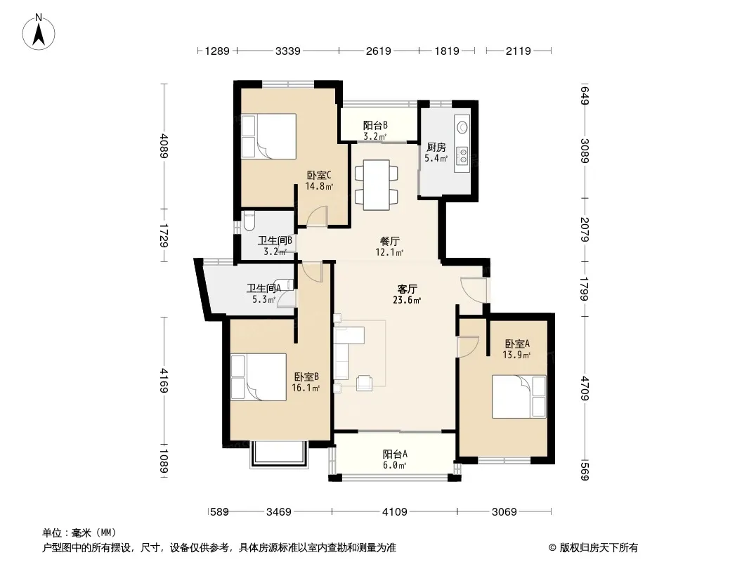 户型齐全,主打户型方正,客厅朝南,明卫,明厨三居