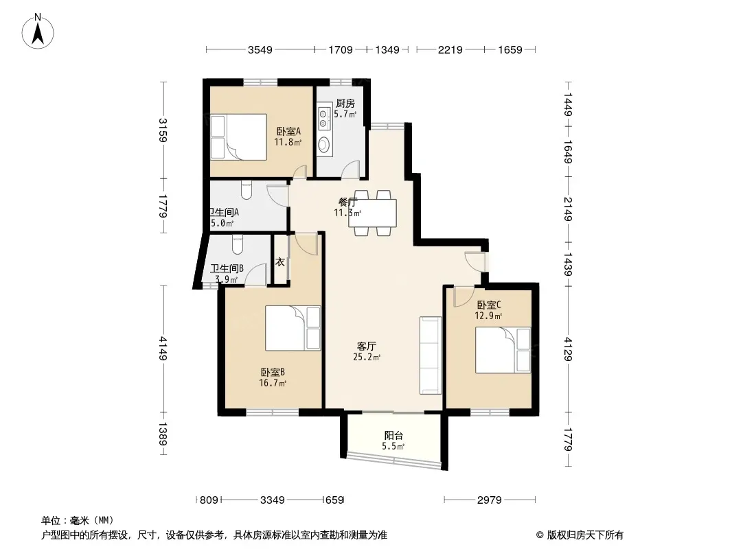 户型齐全,主打户型方正,明厨,主卧朝南三居