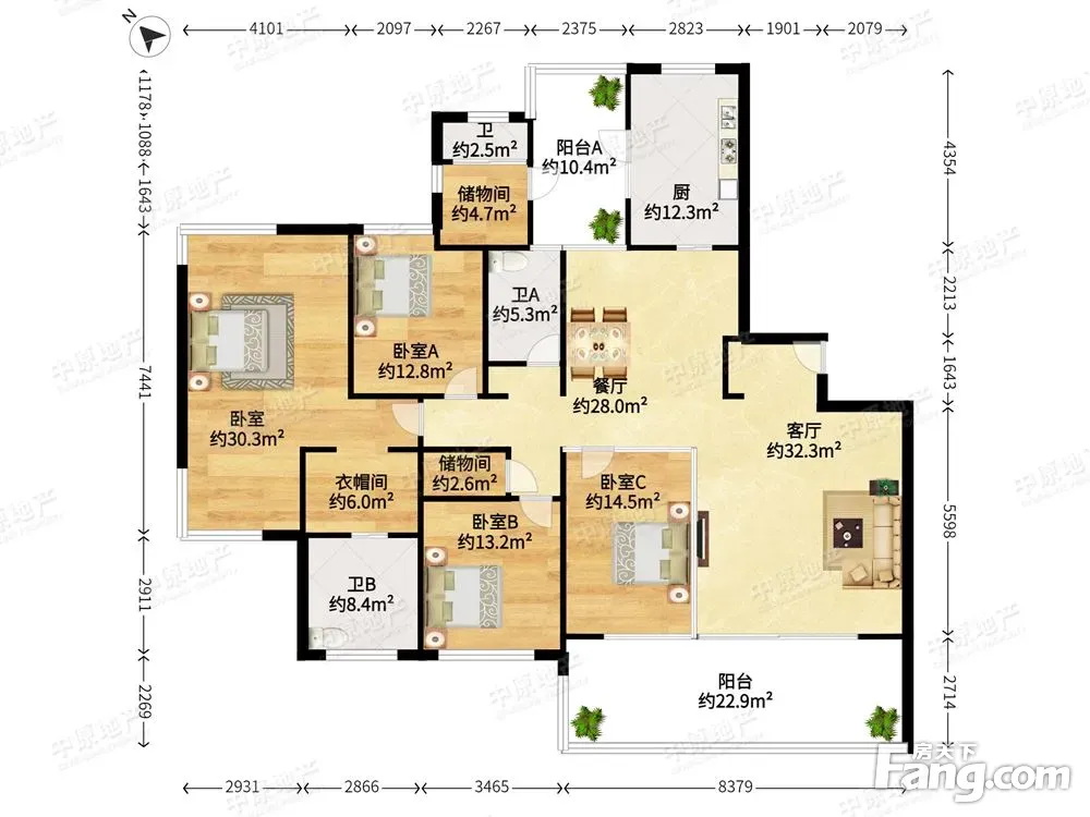 户型齐全,主打户型方正,明卫,双阳台三居