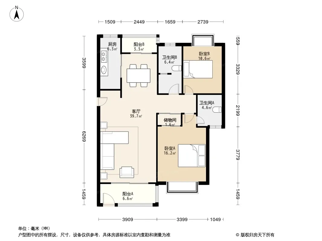户型齐全,主打户型方正,明厨,客厅朝南,双阳台,主卧朝南,明卫三居