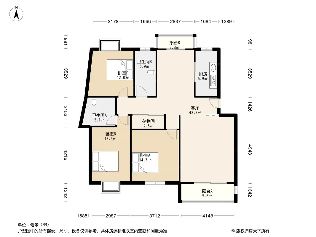 户型齐全,主打户型方正,明厨,客厅朝南,双阳台,主卧朝南,明卫三居