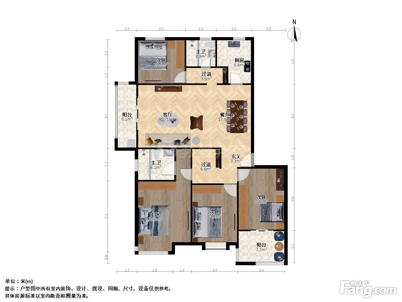 户型介绍:此房户型为4室2厅2卫,建筑面积为161.07平米,朝向为南北。