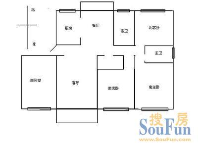 此房小区稀有南大平层大四房,三卧朝南,主卧套房带八角窗 .