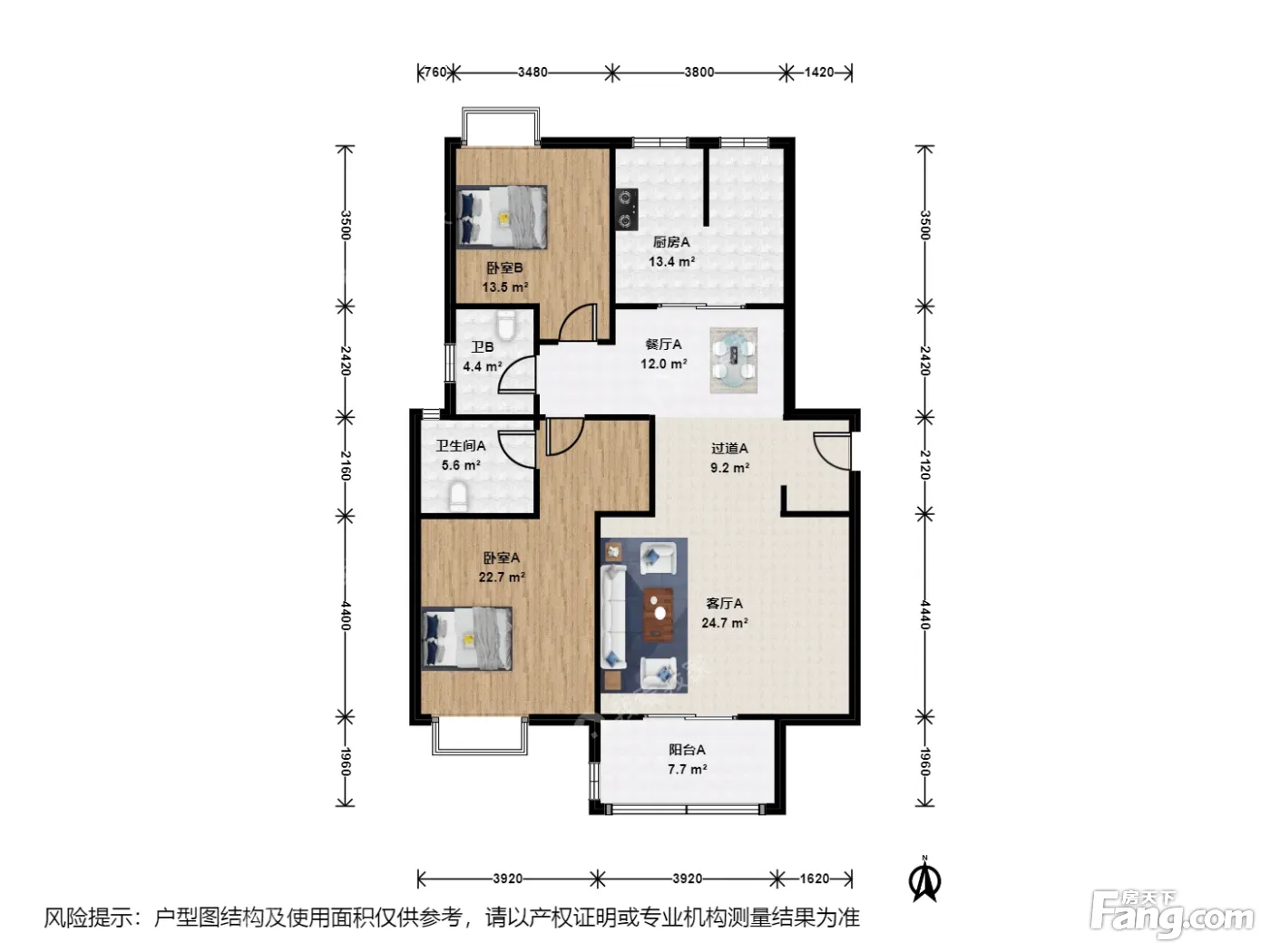 户型介绍:此房户型为2室2厅2卫,建筑面积为141.35平米,朝向为南北。