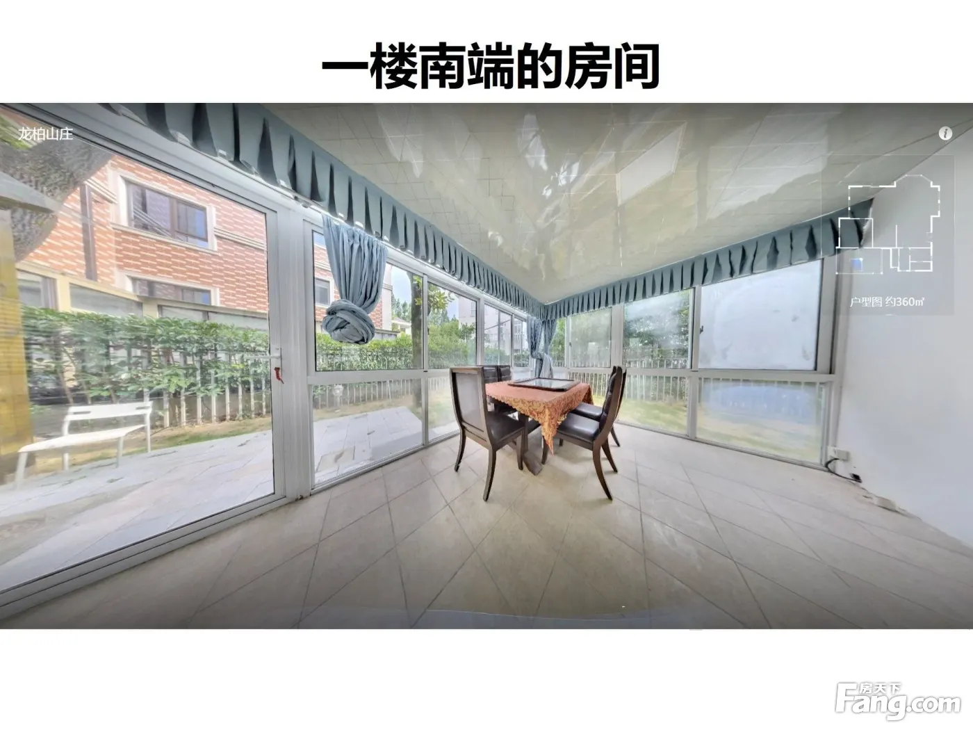 龙柏山庄19号 地上三层建筑面积359.84平 1楼 东进门 南端有一个麻将室 没有做卧室 2楼 西端有一个套房、东端有一个套房 3楼 西端有2个卧室、东端有一个大套房 房型 方正 集中南花园 简装 ==== 龙柏山庄:虹桥路2489弄188号 是长宁区的外环线以内的稀缺的低密度的纯独栋别墅小区,共35 幢独立别墅,是纯独栋别墅小区,建筑面积从359.84平方米到452.00平方米、室内可加装私家电梯 位于大虹桥主城区之东虹桥片区,行政地址属于长宁区西郊宾馆西侧的新泾镇管辖,小区三面环水(北、东、南),东、南均与上海动物园相邻,西侧与虹桥国际机场相望,北侧是复地御西郊,该小区里每个独栋有独立车位和私家花园。 开发公司是置地集团上海有限公司,钢筋混凝土结构 物业公司是上海中西物业管理有限公司 物业费是3.2 元/月/m2 建成年代:1995年左右 有会所,游泳馆,羽毛球馆,健身房,内部餐厅(私房菜),洗车馆,足不出小区尽享品质惬意的生活。小区内部是环形道路 附近配套: 公园:中新泾公园、上海动物园 医院:武警上海市总队医院(三甲),上海和睦家医院(综合),上海申德医院(综合) 商场:福源湾九华商业广场;爱琴海购物公园 交通:57、809、88路、10号线上海动物园站、外环高速、延安高架;直线距离虹桥机场T1航站楼仅约1公里,到虹桥高铁站约1.5公里 附近有很多个著名的私立学xiao与国际学xiao