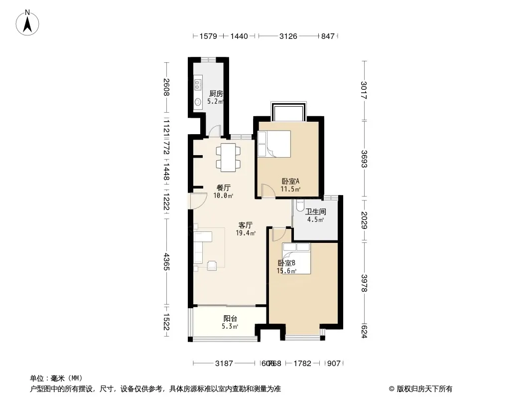户型齐全,主打客厅朝南,户型方正,明厨,明卫,全明格局,主卧朝南二居