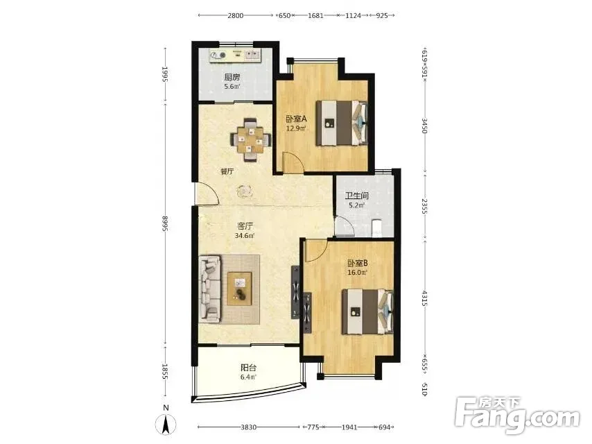 户型齐全,主打户型方正,明厨,明卫,双阳台二居