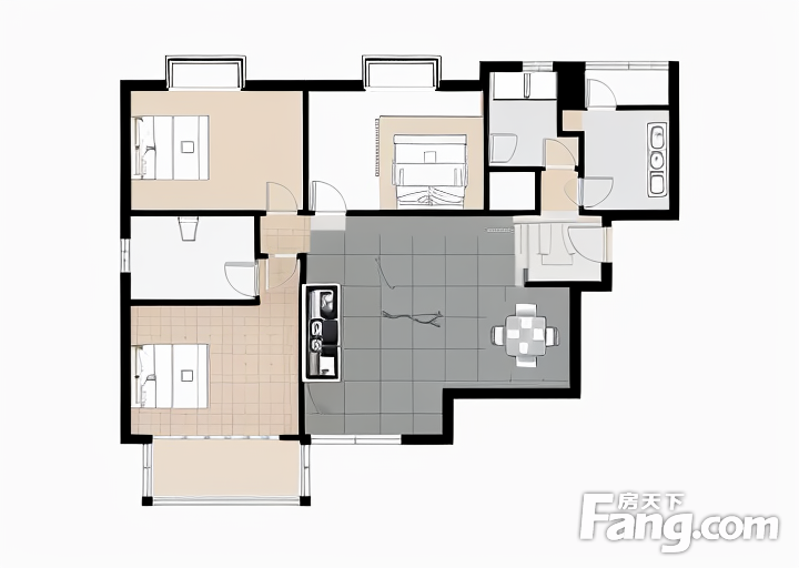 户型齐全,主打明卫,明厨,客厅朝南三居