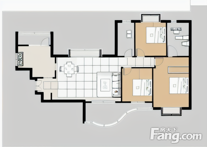 南北通大横厅,两南一北三房,户型方正