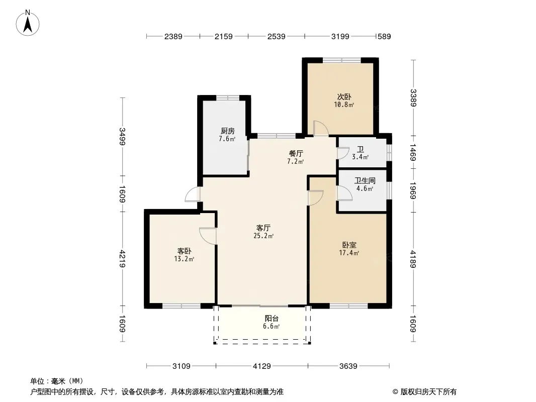 户型齐全,主打南北通透,客厅朝南三居