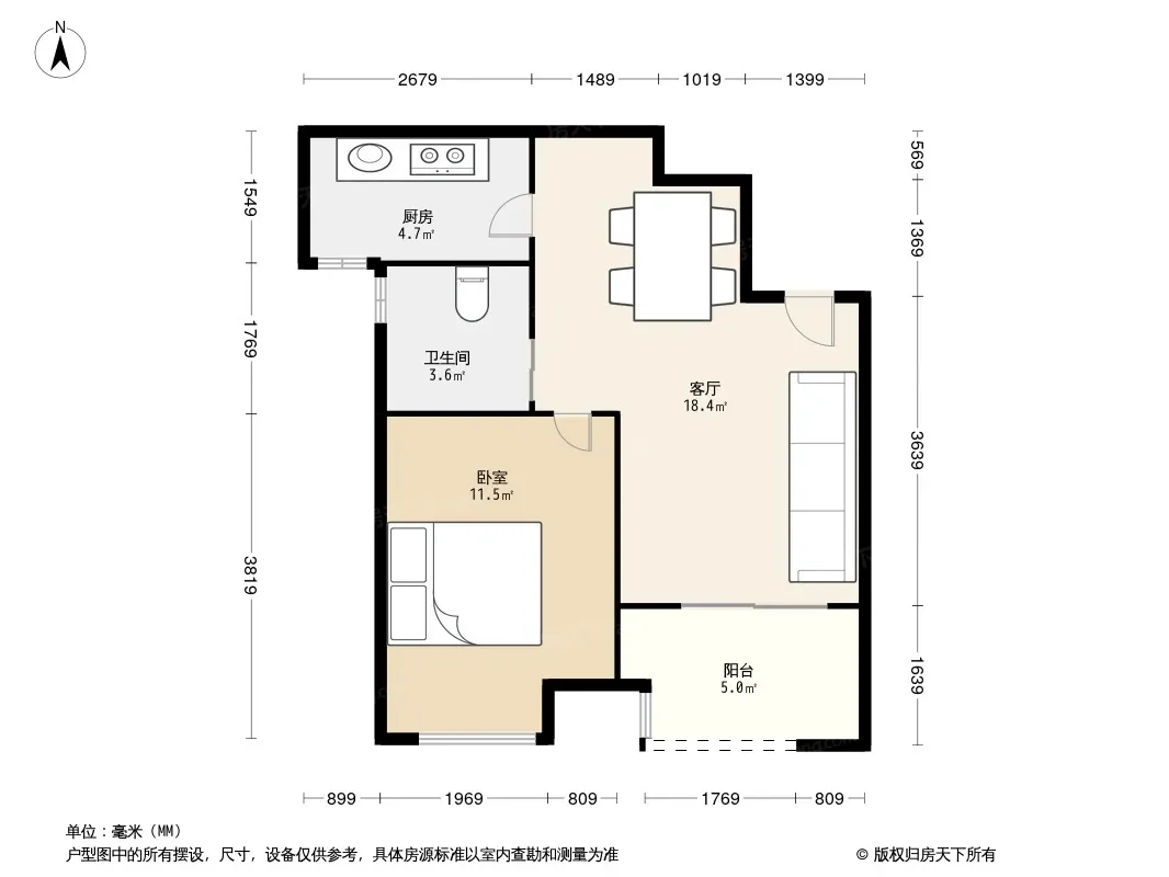 户型齐全,主打户型方正,明厨,明卫,主卧朝南一居