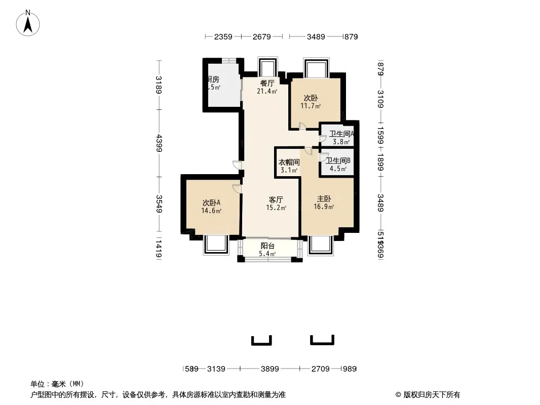 户型齐全,主打南北通透,主卧朝南三居