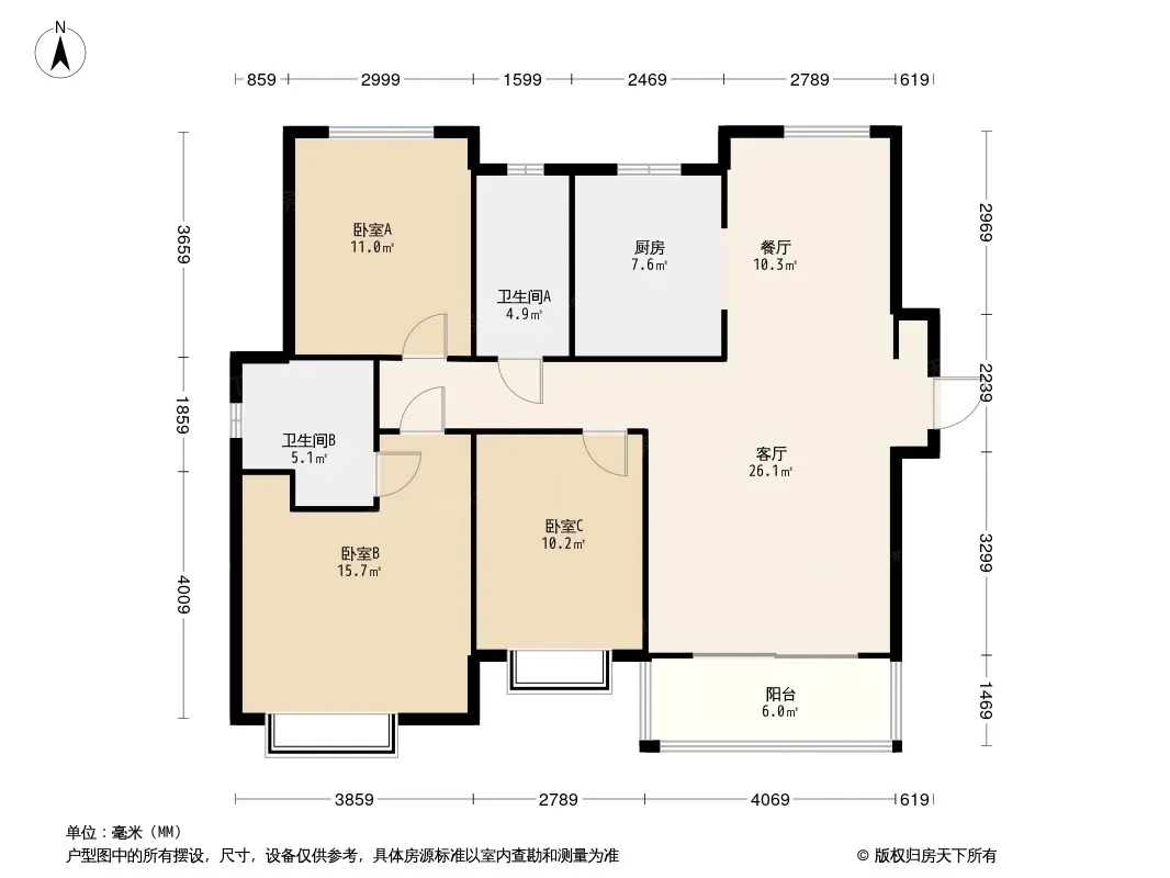户型齐全,主打南北通透,户型方正,客厅朝南三居